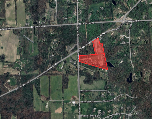 10.82 Acres zoned Office Commercial with Frontage on Pontiac Trail and Frontage on North Dixboro Available for Sale.